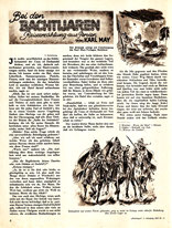 Aus dieser Zeit stammen die sechs Hefte. Karl May war da durchaus ein Thema. In jedem der Hefte ist eine Karl-May-Geschichte (in Fortsetzungen) zu finden, allerdings nur drei Original-May-Geschichten. In den anderen sind es freie Karl-May-«Neuschöpfungen». Immer war es auch der gleiche Illustrator: Emil Hübi.