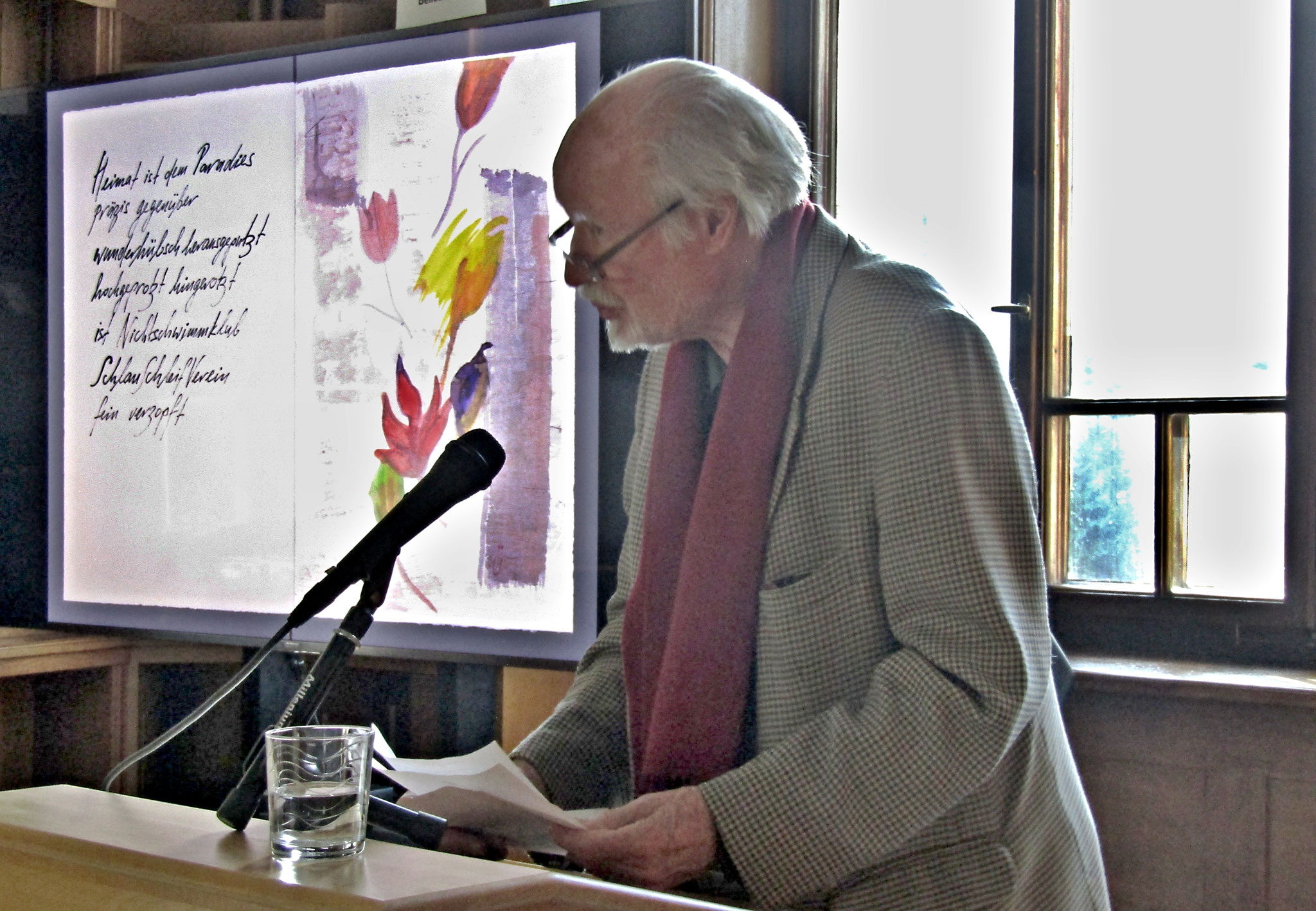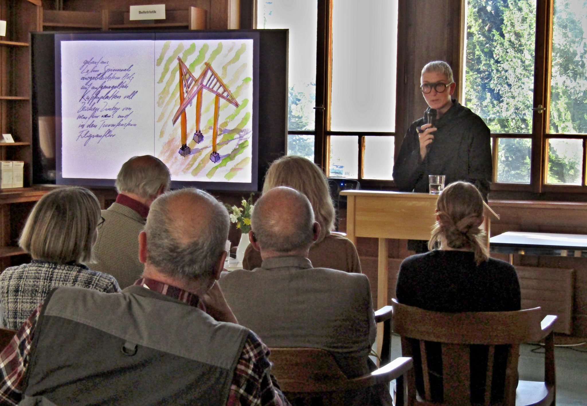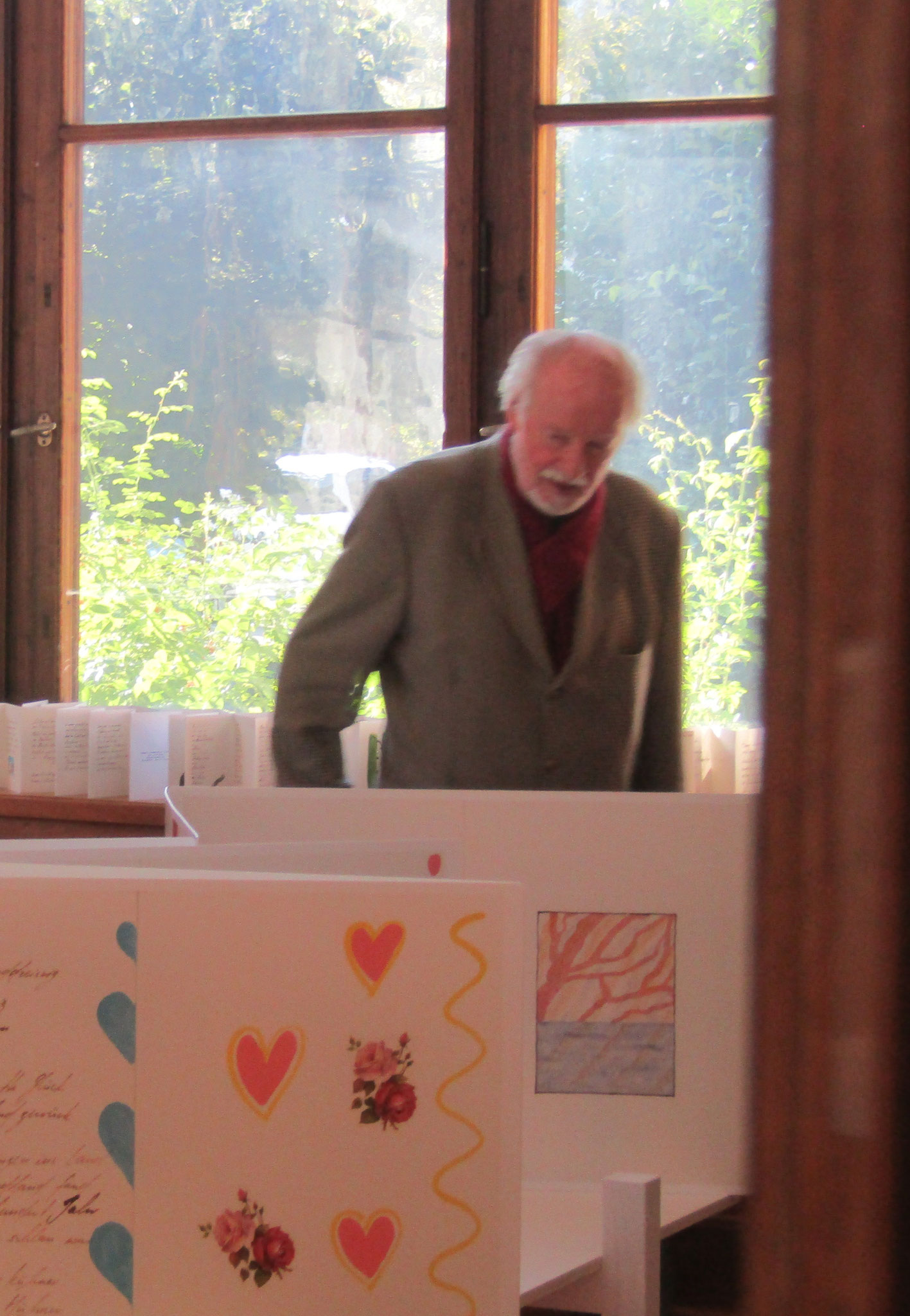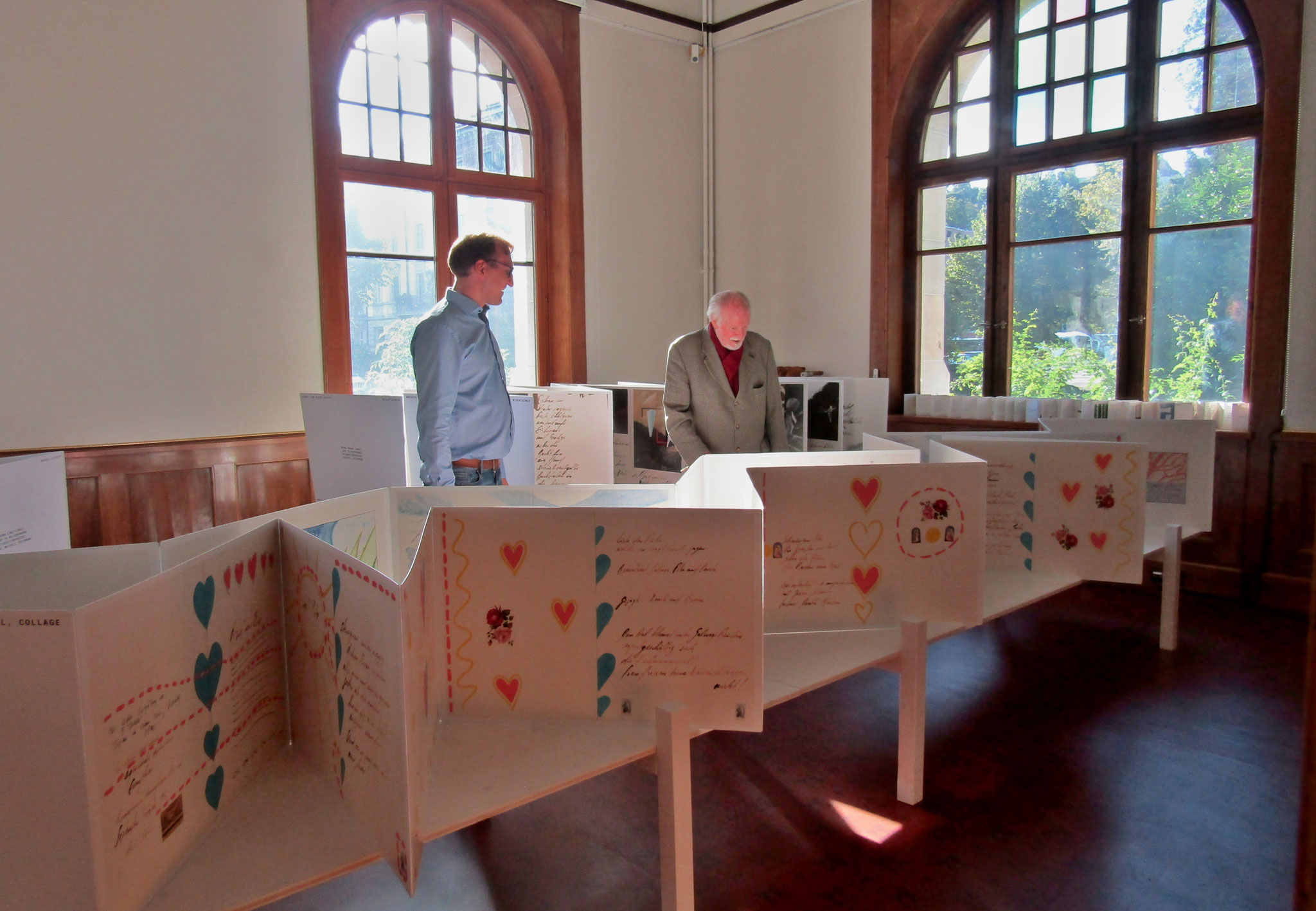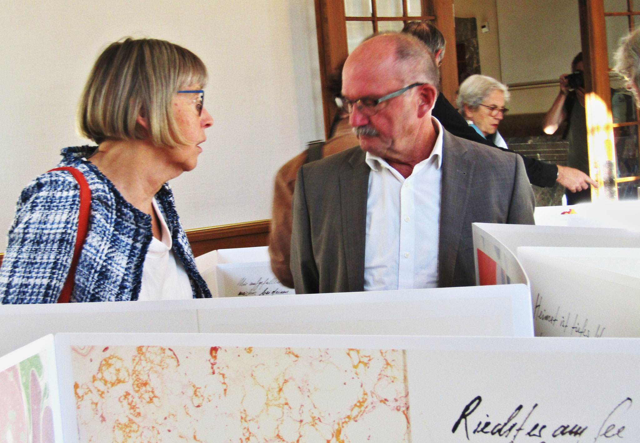 "Vor über 40 Jahren begann der Rapperswiler Schriftsteller Gerold Späth, eigene Texte mit Bambusfeder und Chinatusche auf Fabriano-Papier zu schreiben und die so entstandenen Faszikel in je neun num-merierten Exemplaren einer befreundeten Künstlerin oder einem befreundeten Künstler zur künstlerischen Ausgestaltung zu geben. Bis heute sind 68 Künstler-bücher in Zusammenarbeit mit 38 Kunst-schaffenden entstanden. Je ein Original-Exemplar hat Gerold Späth der Kantons-bibliothek Vadiana St.Gallen geschenkt."